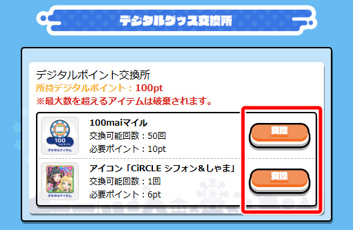 ゲーム内で使用できる「maiマイル」が、デジタルアイテムとして交換できます!
