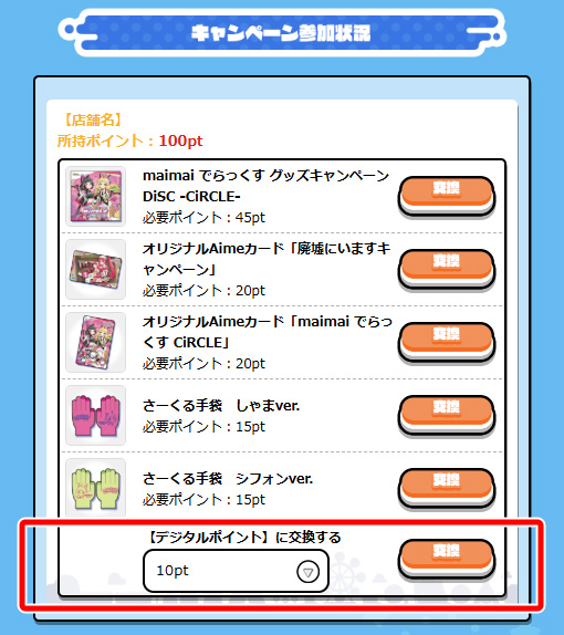 貯まったポイントは「maimaiでらっくすNET」ホームから「グッズキャンペーン」ページで確認!